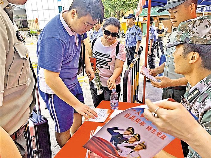 6月8日下午,征兵工作人員在龍華中學考點外開展了針對高考考生的征兵宣傳。