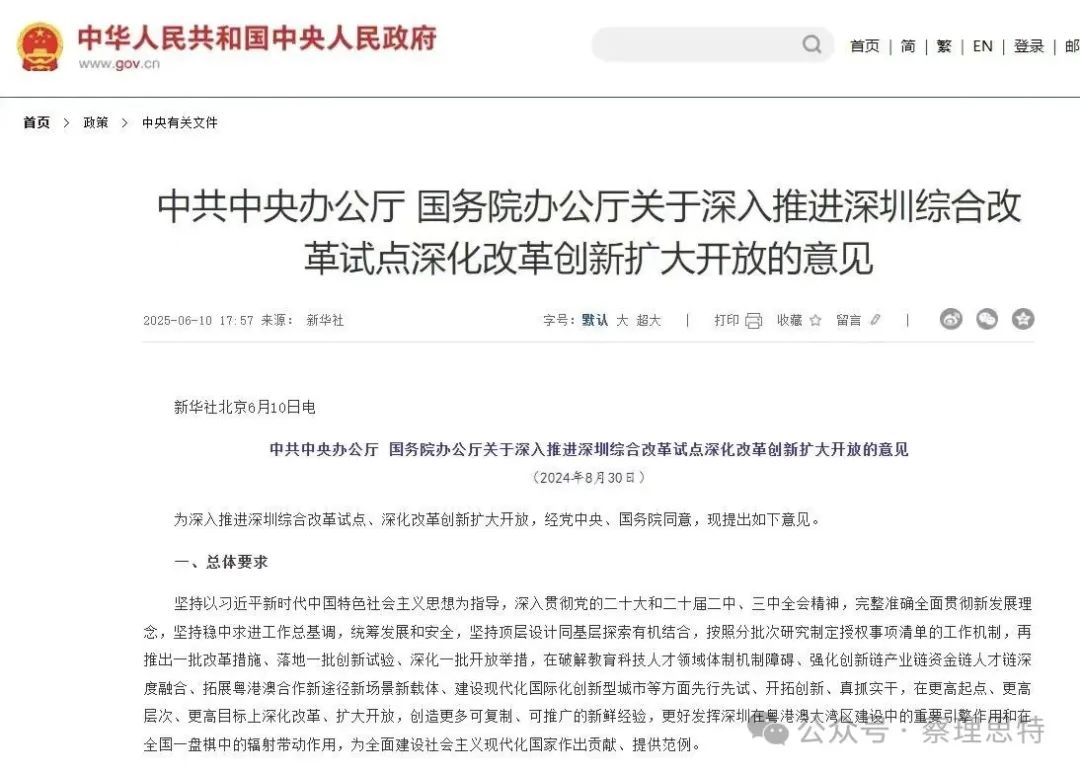 深圳的改革,是一部永不停歇的“進(jìn)行曲”。從經(jīng)濟(jì)特區(qū)到先行示范區(qū),再到綜合改革試點(diǎn)深化,深圳始終以“敢闖敢試、敢為人先”的精神,探索中國式現(xiàn)代化的新路徑。此次《意見》的印發(fā),不僅為深圳注入了新動能,更為全國改革提供了新范式。