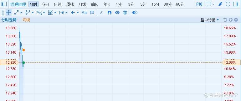 B站開盤漲超18%,現(xiàn)報12.92美元,漲12.06%。