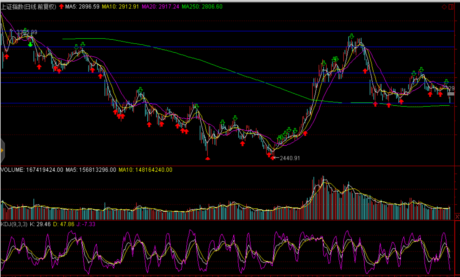 技術面:短期延續(xù)弱勢調(diào)整,滬綜指跌破6月初低點(2822點),年線2800點一線成為短期爭奪焦點。