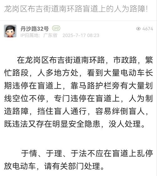 14. 帖文《龍崗區(qū)布吉街道南環(huán)路盲道上的人為路障!》
