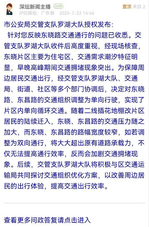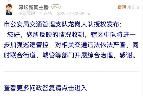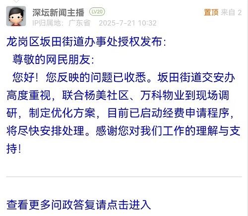 各職能單位如需對網友反映的問題進行回應,可在深圳論壇注冊官方賬號并通過認證,回帖進行回應。