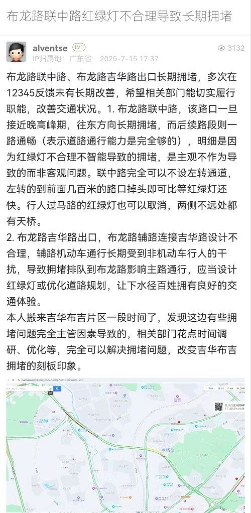 10. 帖文《布龍路聯(lián)中路紅綠燈不合理導致長期擁堵》