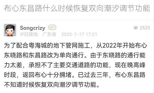 17. 帖文《布心東昌路什么時候恢復雙向潮汐調節(jié)功能》