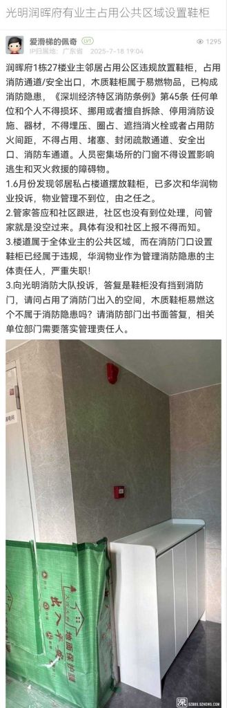 24. 帖文《光明潤暉府有業(yè)主占用公共區(qū)域設置鞋柜》
