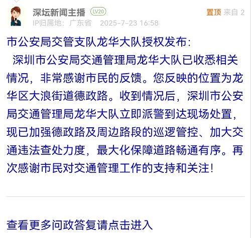 深圳市公安局交通管理局龍華大隊已收悉相關情況,非常感謝市民的反饋。您反映的位置為龍華區(qū)大浪街道德政路。收到情況后,深圳市公安局交通管理局龍華大隊立即派警到達現場處置,現已加強德政路及周邊路段的巡邏管控、加大交通違法查處力度,最大化保障道路暢通有序。再次感謝市民對交通管理工作的支持和關注!