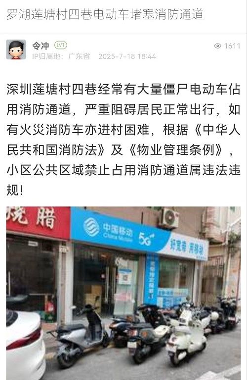 23. 帖文《羅湖蓮塘村四巷電動車堵塞消防通道》
