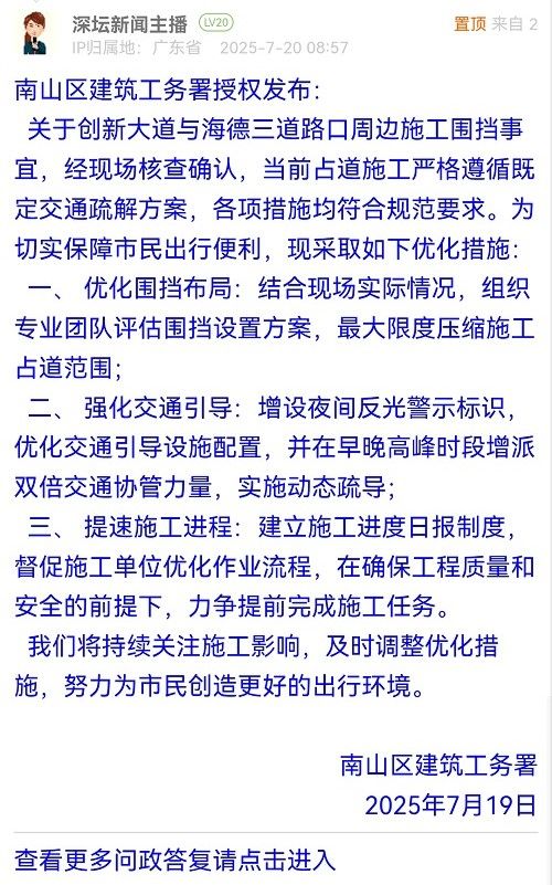 我們將持續(xù)關注施工影響,及時調整優(yōu)化措施,努力為市民創(chuàng)造更好的出行環(huán)境。