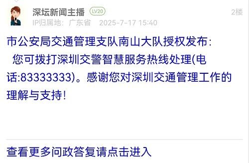 網友如有相關訴求、建言和意見的,可直接在深圳論壇“我說深圳事”欄目發(fā)帖進行報料、投訴,或者通過官方報料QQ以及問政熱線等渠道反映訴求。